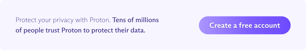 Tous les abonnements Proton incluent Proton Mail, Proton Calendar, Proton Drive et Proton VPN(nouvelle fenêtre), le tout chiffré de bout en bout, pour sécuriser votre connexion internet, où que vous soyez. Utilisez Proton Mail gratuitement pour vous protéger.