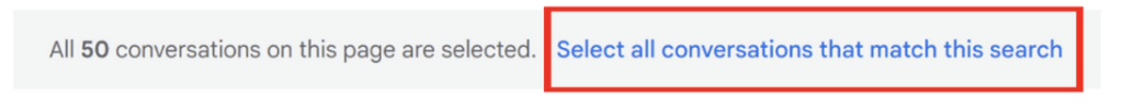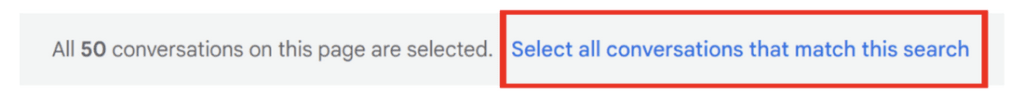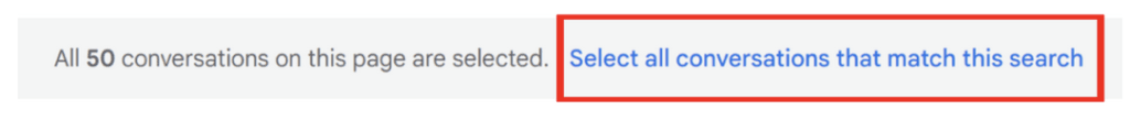2. At the top in gray text it now reads All 𝑥 conversations on this page are selected. Click the blue text to the right of it, which reads Select all 𝑥 conversations in Primary: