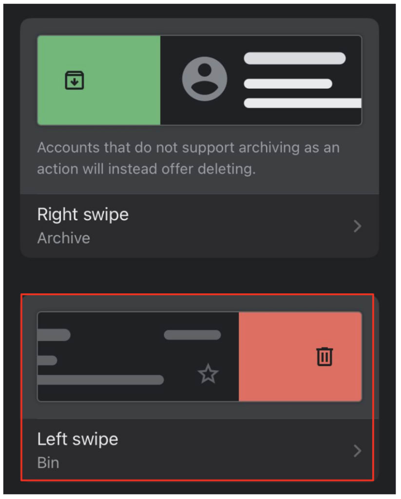5. Tap Right swipe or Left swipe to choose which swipe direction will delete emails.