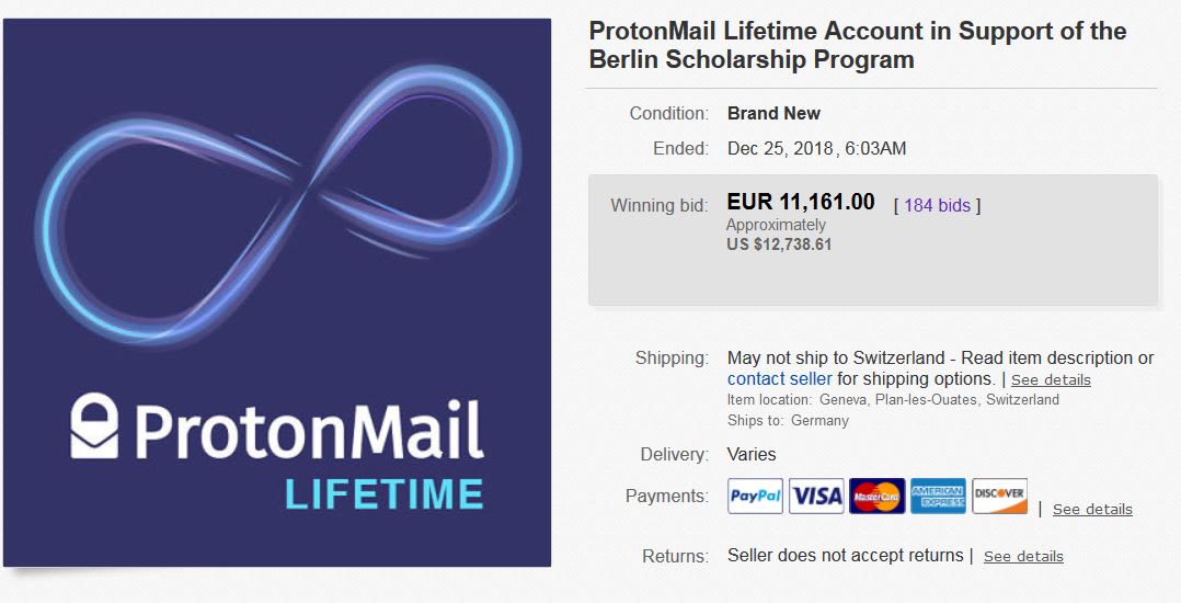 Congratulations to our three newest Lifetime Account owners! You are joining a very select group of users, and your generous contributions this holiday season make the world a better place. From the Proton Mail team, we wish everybody happy holidays and an even better 2019.