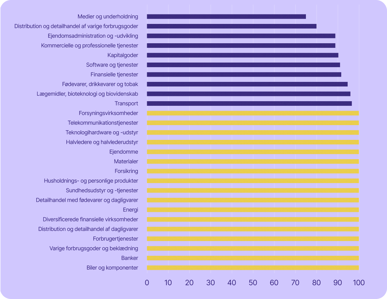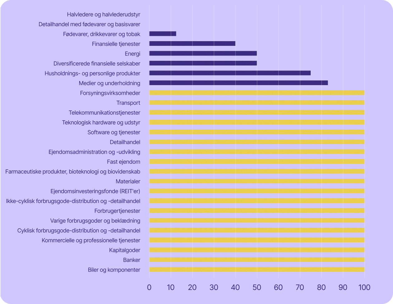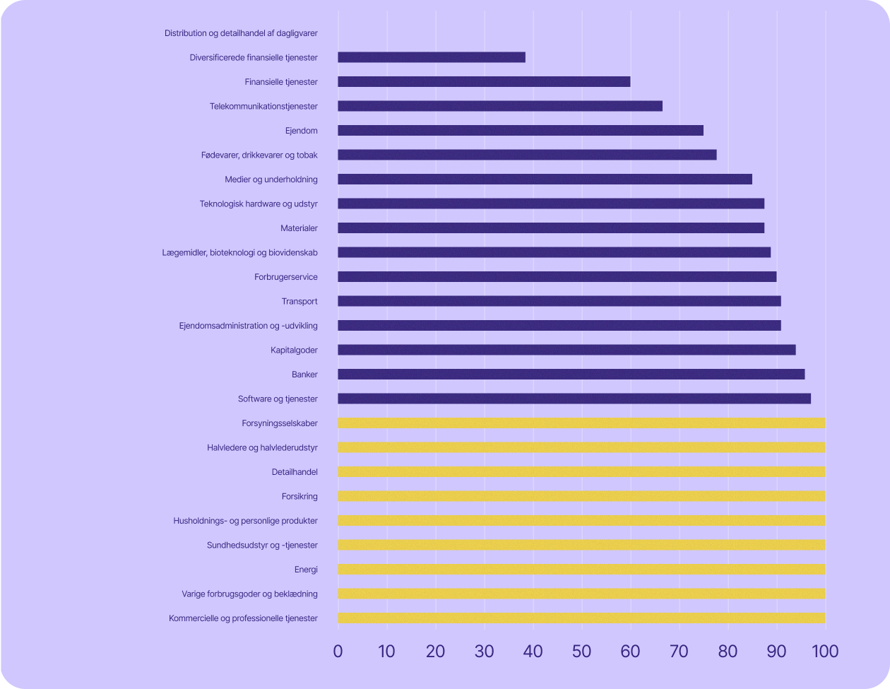 Virksomheders afhængighed af amerikansk teknologi fordelt på sektor