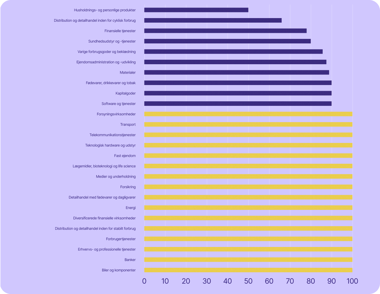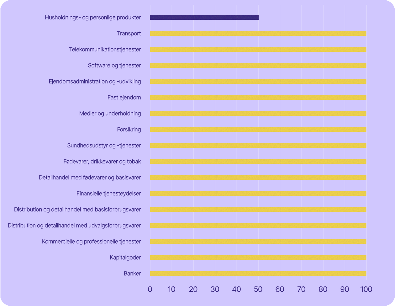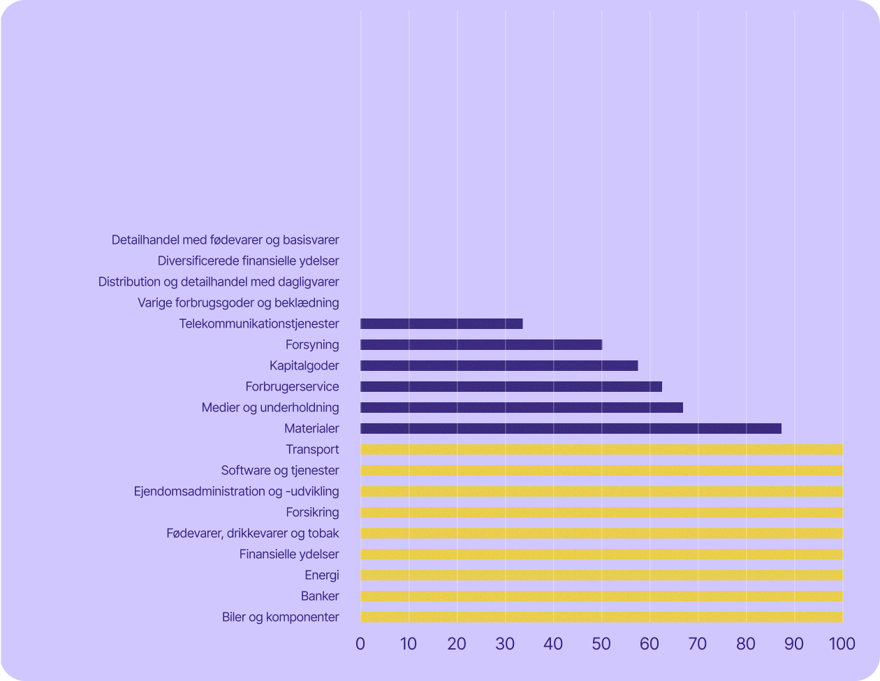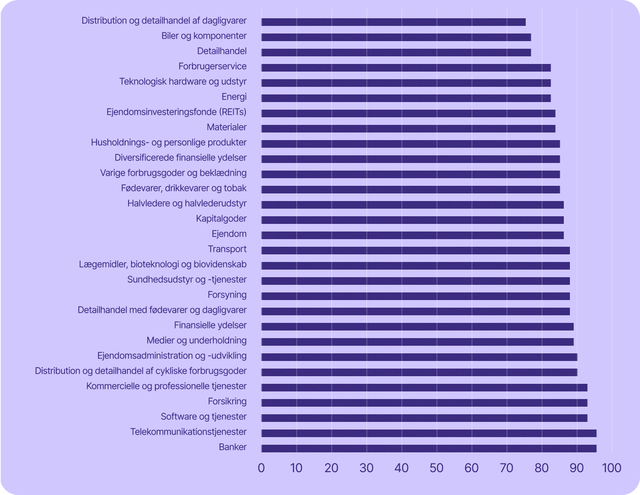 Virksomheders afhængighed af amerikansk teknologi fordelt på sektor