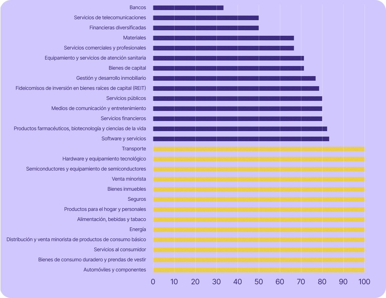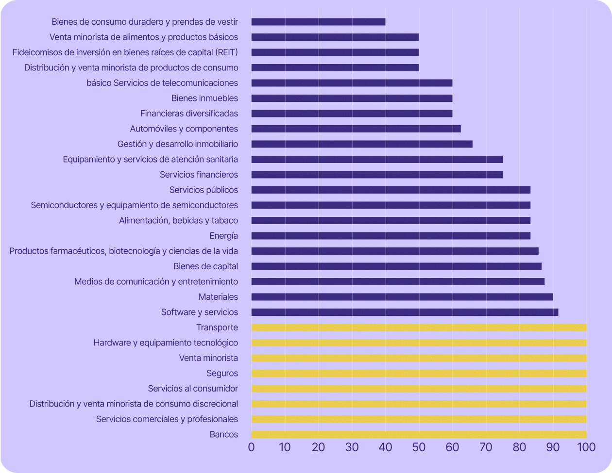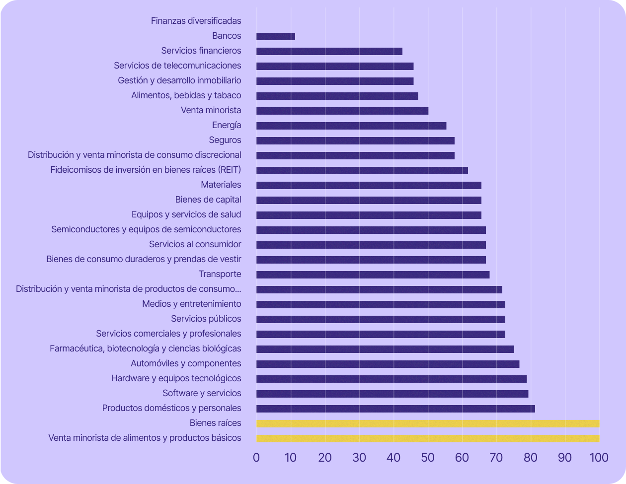 Algunos de los sectores más críticos para la economía suiza están aún más expuestos. El sector de servicios, que incluye banca, finanzas, seguros y servicios profesionales (entre otros), representó el 70 % del PIB del país en 2023 y empleó al 78 % de su fuerza laboral en 2024. En todos estos sectores (excepto la banca), al menos el 67 % de las empresas que cotizan en bolsa utilizan tecnología estadounidense.
