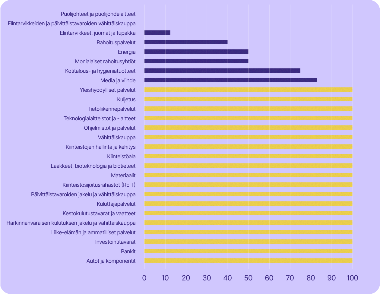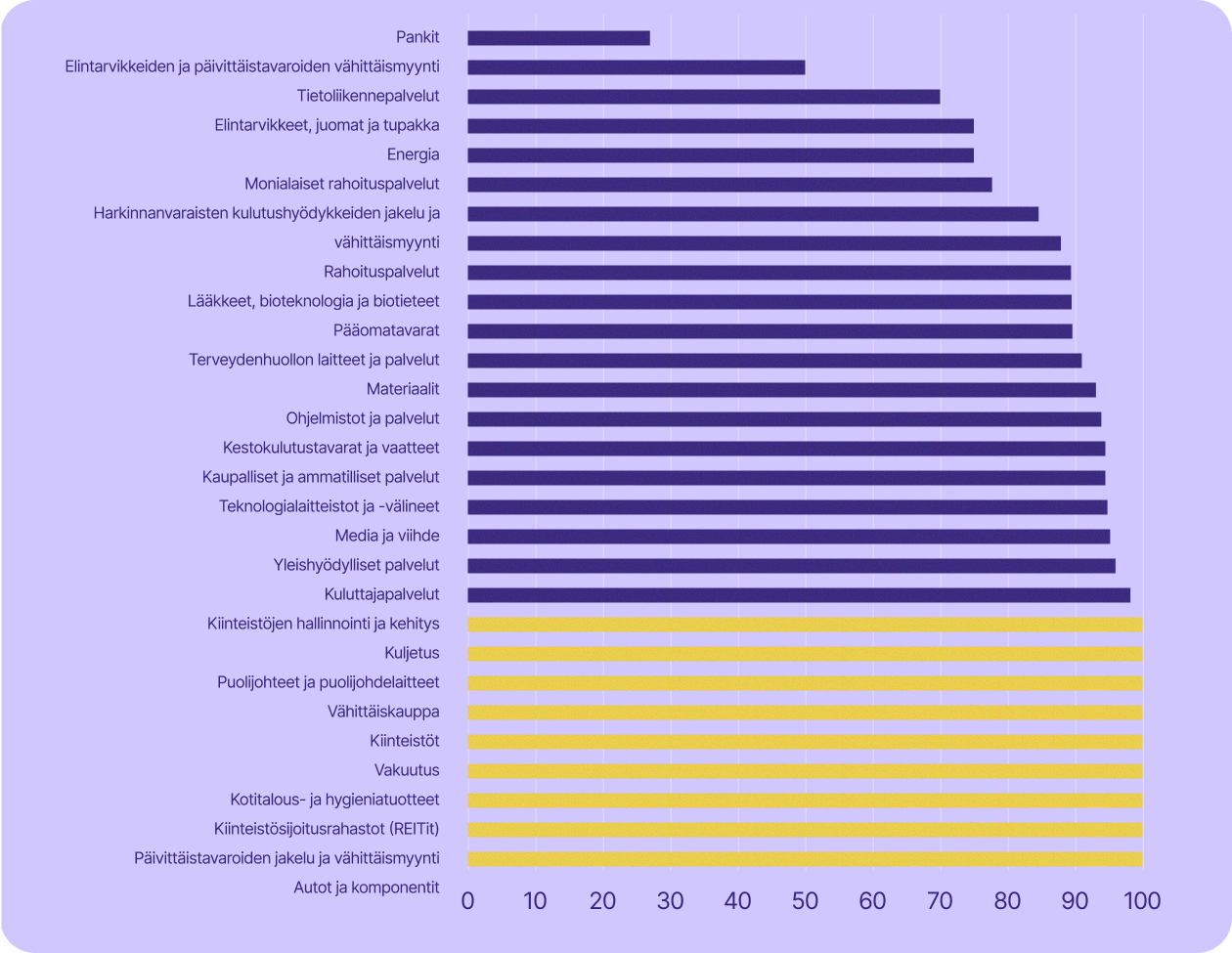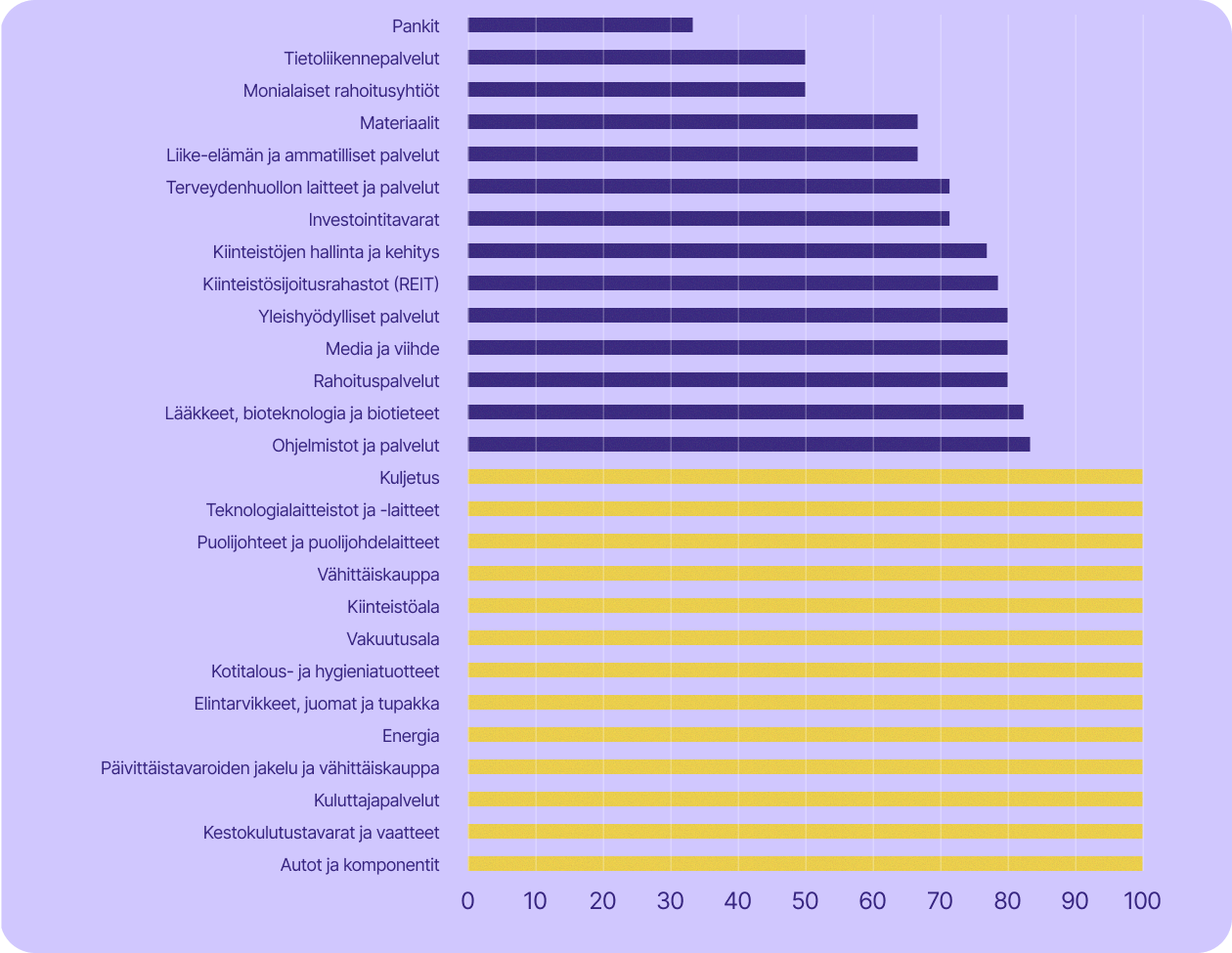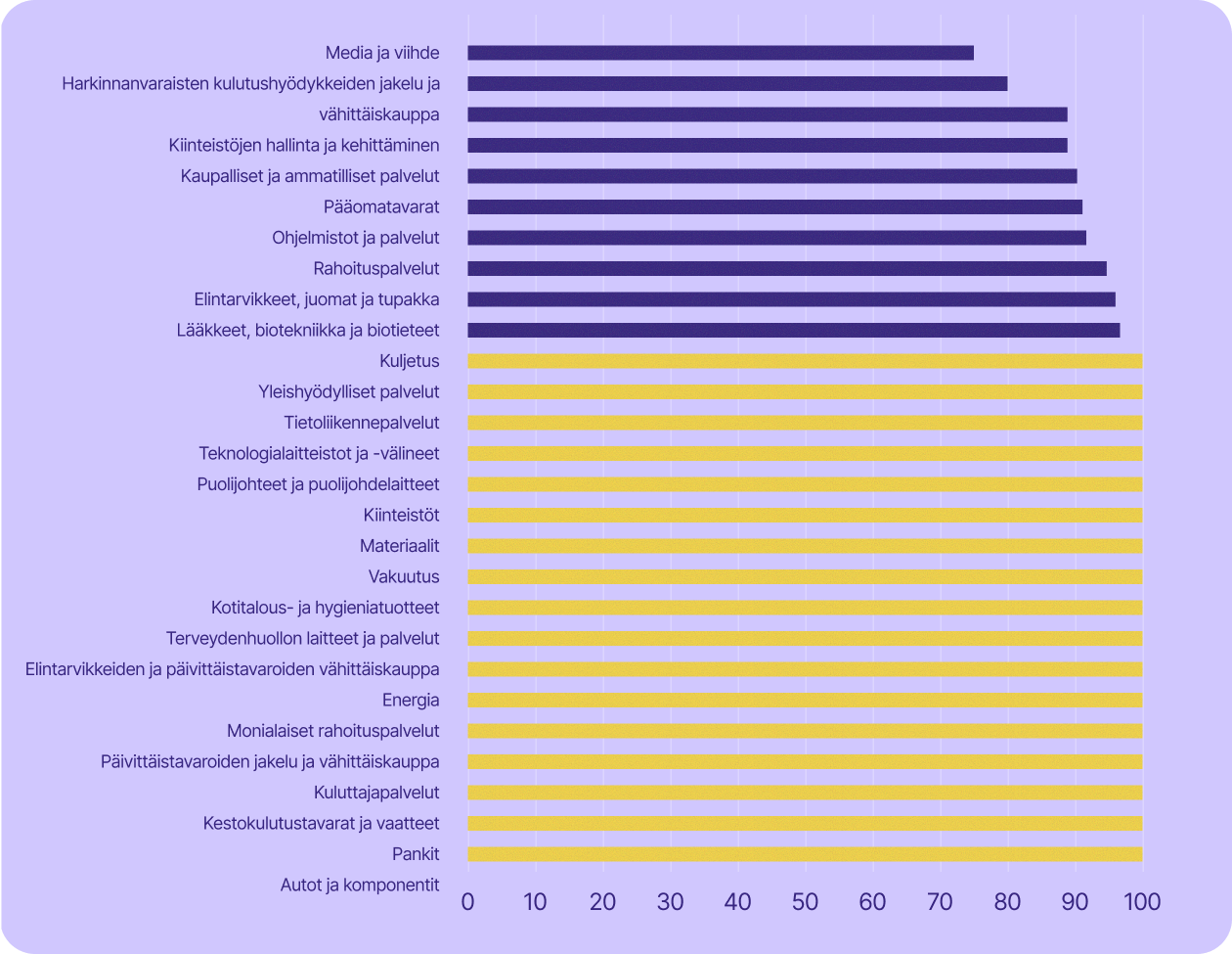 Yritysten riippuvuus yhdysvaltalaisesta teknologiasta toimialoittain