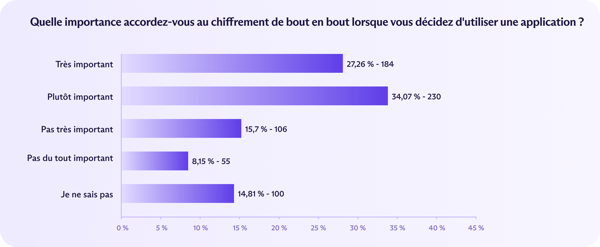 Une majorité de Français (61 %) estiment que le chiffrement de bout en bout (E2EE) est important lors du choix d'une application, mais seuls 27 % le jugent « très important », soit la part la plus faible parmi les quatre pays étudiés.