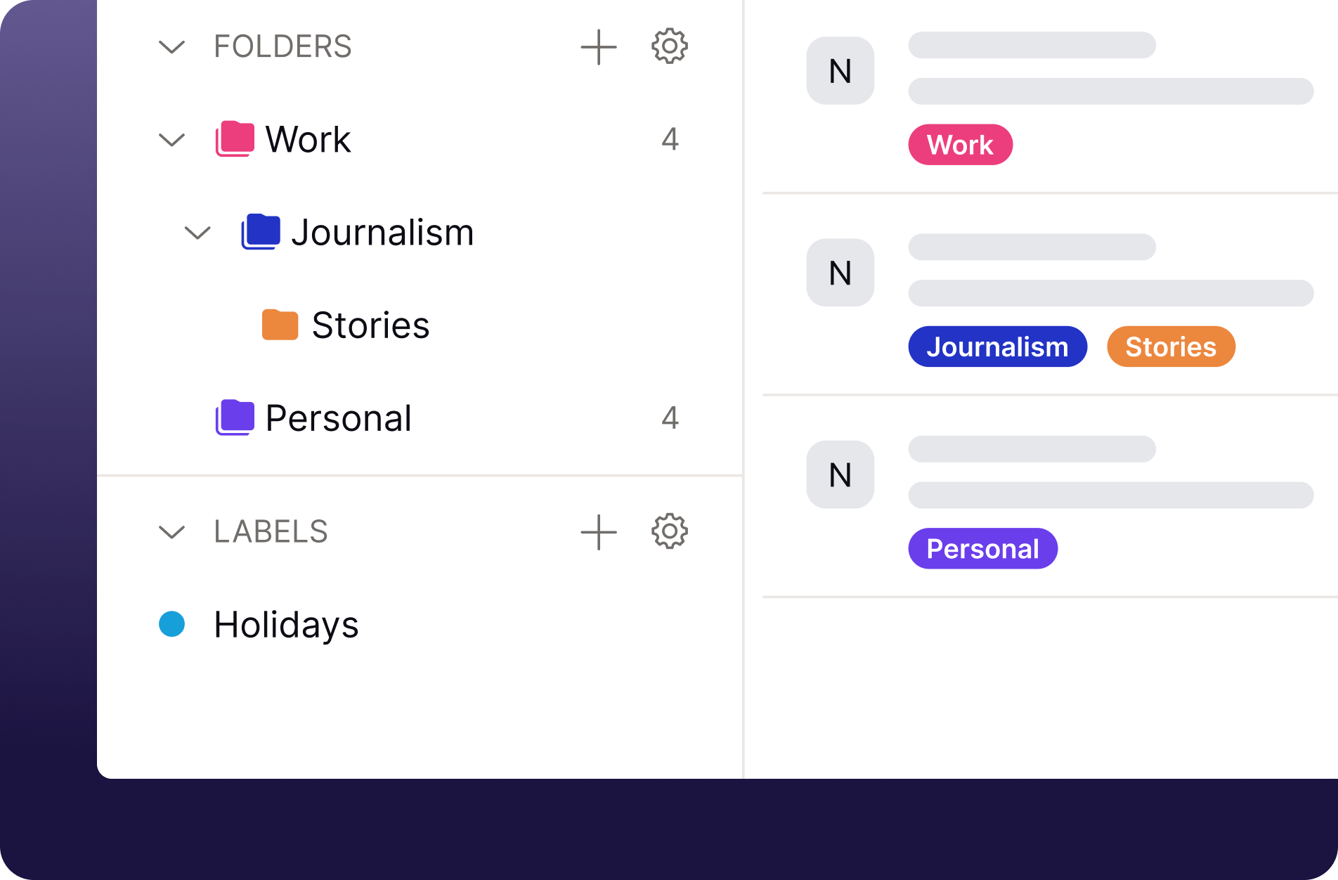 Conferma la partecipazione agli eventi direttamente dalla tua posta in arrivo. Crea eventi, invia inviti e imposta promemoria, tutto dal tuo calendario crittografato.