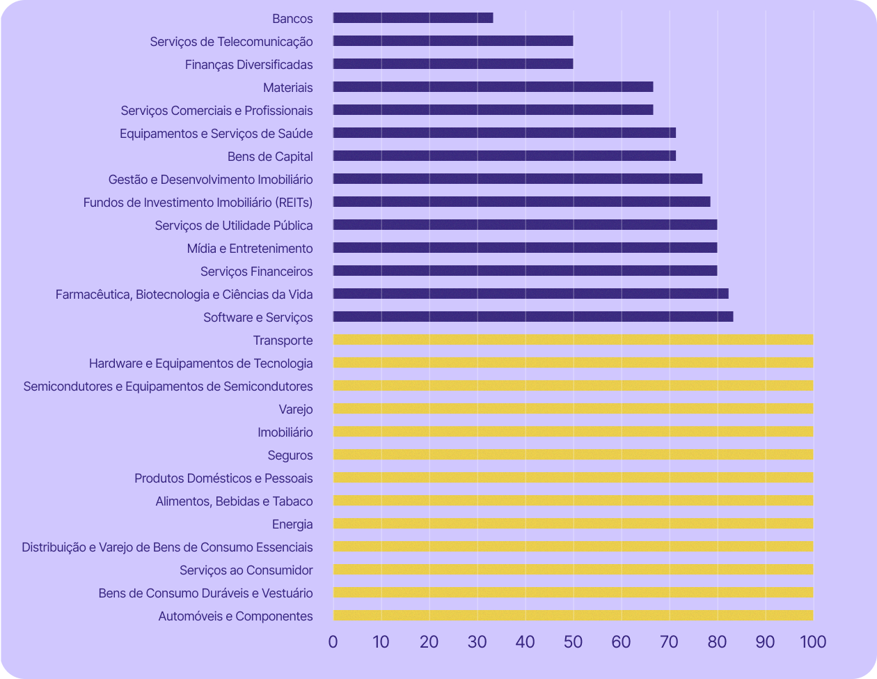 Alguns dos setores mais críticos para a economia suíça estão ainda mais expostos. O setor de serviços, que inclui bancos, finanças, seguros e serviços profissionais (entre outros), representou 70% do PIB do país em 2023 e empregou 78% da força de trabalho em 2024. Em todos esses setores (exceto o bancário), pelo menos 67% das empresas de capital aberto usam tecnologia dos EUA.