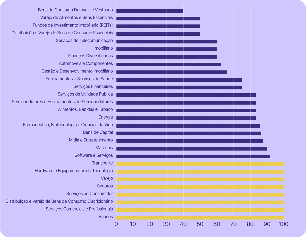 - Por que alguns países mostram menos setores do que outros?
